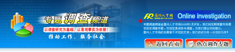本次調(diào)查目的在于深入了解近期求職者的就業(yè)意向,為不斷完善我人才市場對(duì)畢業(yè)生就業(yè)指導(dǎo)工作提供導(dǎo)向和決策依據(jù)。本次調(diào)查只用于數(shù)據(jù)的統(tǒng)計(jì)分析,不會(huì)給你個(gè)人帶來任何不利影響,請(qǐng)實(shí)事求是地予以回答。 感謝你對(duì)眉山市人力資源市場的支持和配合!